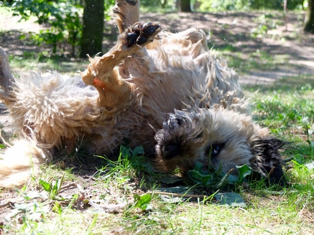 Durchs heimische Lindenviertel geht es dann schnell zum "Küchengarten", dem ehemaligen Obst- und Gemüsegarten des Adelsgeschlechtes der Welfen. Dann vorbei am Heizkraftwerk Linden und den "Drei warmen Brüdern", wie die hohen Schornsteine genannt werden, an die Ihme. Bogart nimmt in dem 16-Kilometer langen Nebenfluss der Leine erst einmal ein genüssliches Bad, bevor es am "Strandleben", der angesagten Standbar, vorbei in den "Georgengarten" geht, der zusammen mit dem Großen Garten, dem Berggarten und dem Welfengarten zu den Herrenhäuser Gärten gehört. Je nach Zeit und Lust wählen die beiden unterschiedlich lange Wege.