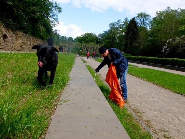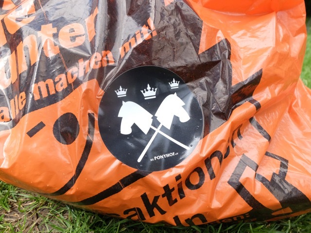 Klar ist auch, dass bei derlei Nutzung Müll entsteht, obwohl der Römerpark dank der umsichtigen Nutzung der Südstädter und der nicht minder akkuraten Säuberung durch die Kölner Abfallwirtschaftsbetriebe (AWB) sicherlich zu einem der saubersten und gepflegtesten Anlagen in Köln gilt. Doch hat man auch in der Domstadt den Werbeslogan von "Klementine" aus den 1970er Jahren nicht vergessen, die bei Nutzung eines speziellen Waschpulvers die Reinheit der Wäsche versprach. Die Domstädter gründeten die Aktion "Kölle putzmunter" und fragen die Bewohner der Stadt, ob sie nicht beim aufräumen helfen möchten. Von Frühlingsanfang bis Ende September meldet man eine Aktion an, erhält Handschuhe und Müllsäcke und die Gewissheit, dass der gesammelte Müll an einem zu vereinbarenden Ort abgeholt und fachgerecht entsorgt wird. Den Pfingstsonntag hatte sich die KG Ponyhof ausgesucht, um mit Müllsäcken und -zangen bewaffnet, meinen Lieblingspark zu säubern.