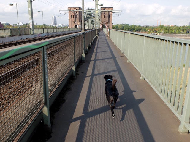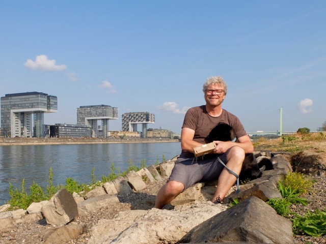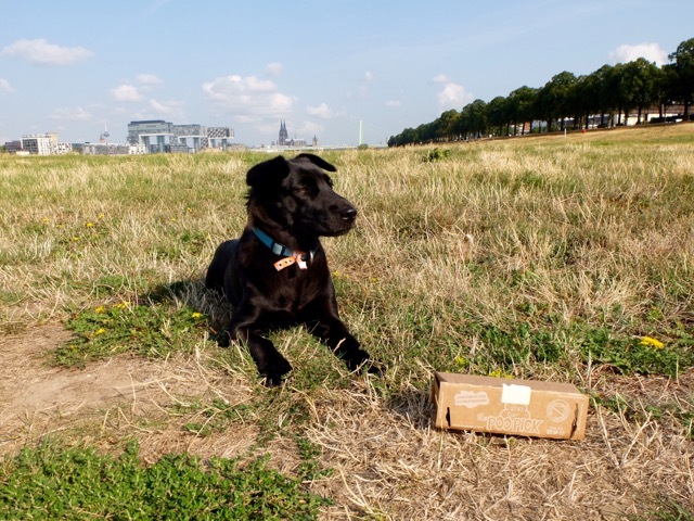 Unterwegs begegnen wir Mia und ihrer Französischen Bulldogge "Lilly". Die Kölnerin ist so freundlich, ein Foto von Pepples, mir und dem PooPick zu machen. Und natürlich sprechen wir auch über den Grund der Hunderunde. Sie ist von der Idee begeistert, freut sich, dass ich mein Reserveexemplar an sie weitergebe und verspricht, ihre Erfahrungen aufzuschreiben (Hunderunden/Facebook).