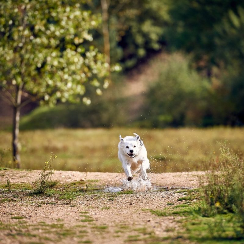 Extrawürste gibt`s also nicht für Mały. Die würden ihm aber auch gar nicht bekommen, denn der kleine Spitz-Border Collie-Dalmatiner wird schnell ungesund rund. Neben geregelten Mahlzeiten ohne Zwischendurch-Leckerli, legen Chris und Annie darum sehr viel Wert auf Auslauf. Die Wahner Heide hat es den beiden dabei besonders angetan: die abwechslungsreiche Wald- und Heidelandschaft mit ihrer wundervollen Farbpalette von Flieder im Frühjahr über die schönsten Grünschattierungen im Sommer, bis hin zu den goldenen Herbsttönen und der zauberhaften Winterlandschaft, hat jede Jahreszeit hier ihren ganz eigenen Reiz. Und so kommen die drei öfter aus Frechen auf die Heideterrasse zwischen Rösrath und Troisdorf. Denn sie lieben wie weiten Flächen und den Platz, den ihnen de Natur bietet.