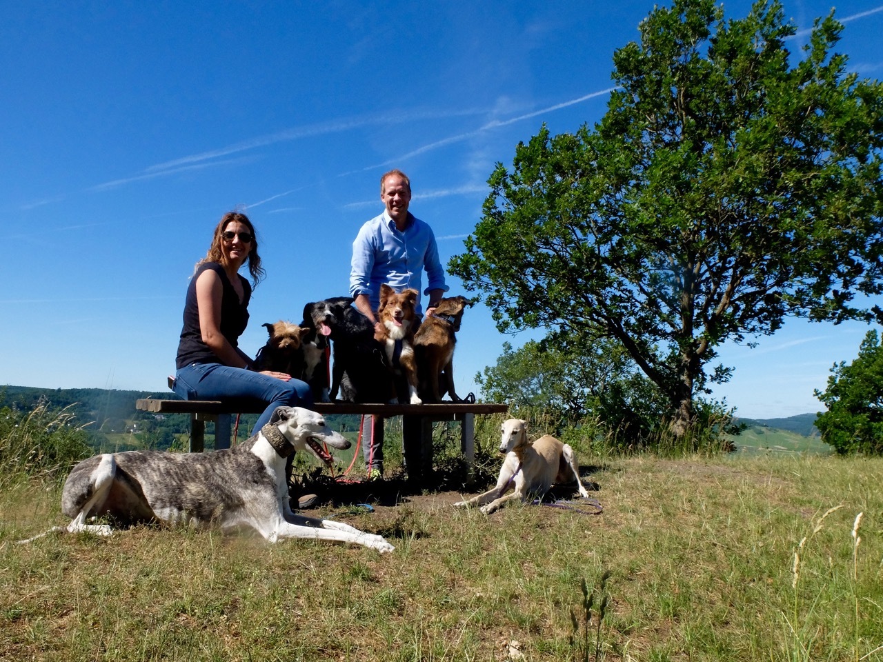 Sandra Schlatter ist die personifizierte Tierliebe - sie kann nicht mit ansehen, wenn es Tieren schlecht geht. Das neueste Familienmitglied bei den Schlatters ist die 14-jährige Yorkshire-Terrier-Hündin "Mandy", die den Weg über das Koblenzer Tierheim in die Familie gefunden hat. Ihr Frauchen musste ins Altersheim und konnte ihren zucker- und herzkranken Hund nicht mitnehmen. "Als ich Mandys Foto sah, war es um mich geschehen", erklärt Sandra Schlatter, die mit Hilfe einer Charmeoffensive ihrer beiden Kinder den Hausherrn schließlich überzeugen konnte. Nur fünf Wochen später tollt Mandy mit den anderen sechs Hunden wie eine Fünfjährige über die Wiesen des Römersteigs, eine der Lieblingsrunden der Familie Schlatter. Die "Glorreichen 7" bestehen übrigens aus der "Ex-Spanierin" Kara, Galgo Wilma, Greyhound Peewee, Malinois-Mix Sam, "Scheidungshund" Lilly, Aussie Leni und dem Koblenzer Neuzugang Mandy. Mit viel Liebe und Aufmerksamkeit kümmert sich die ganze Familie um die Vierbeiner, die teilweise eine schlimme Vorgeschichte haben. Gefüttert wird - wie sollte es anders sein - qualitativ wertvolles und auf die Bedürfnisse der teilweise recht betagten und kranken Hunde abgestimmtes Futter. Gut, dass der Hausherr direkt an der Quelle sitzt.