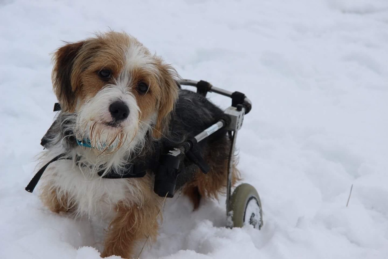 Ich wollte keinen Welpen. Es sollte ein Hund in Amys Alter sein, und somit begann die Suche im Internet. Auf der Seite "ProTier e.V." fiel mir schnell das Gesicht eines Hundes auf. Ich war sofort verliebt und konnte gar nicht schnell genug mehr über diesen kleinen Hund erfahren. Doch leider war Simba, der Hund in den ich mich so verliebt hatte, gelähmt und fuhr mit einem Rollstuhl durch sein Leben. Das war nicht das, was ich mir vorgestellt hatte. Darüber hinaus war ich mir auch überhaupt nicht sicher, ob meine 20-jährige Hundeerfahrung für so einen Fall ausreichen würde.
