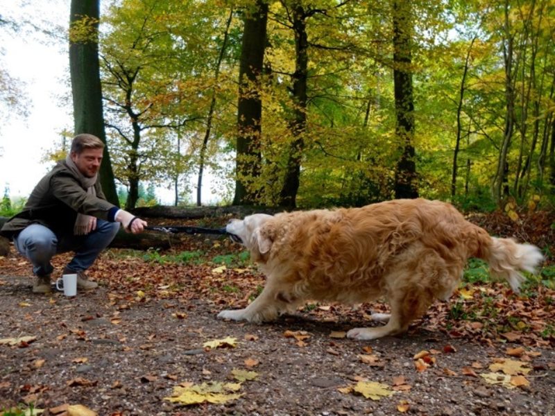 „Ich bin ja selbst der typische Tierhalter und tue alles für meinen Hund“. Tobias Tietje hebt seinen 11-jährigen Golden Retriever Paul, den er liebevoll „Meinen Erstgeborenen“ nennt, aus dem Kofferraum seines Autos. Man sieht Paul an, dass er nicht mehr der Jüngste ist, und dass die Gelenke ab und an schmerzen. Aber auf der Hunderunde im Königsdorfer Forst gibt er noch mal richtig Gas und fordert Herrchen zum Spielen mit der Leine auf.