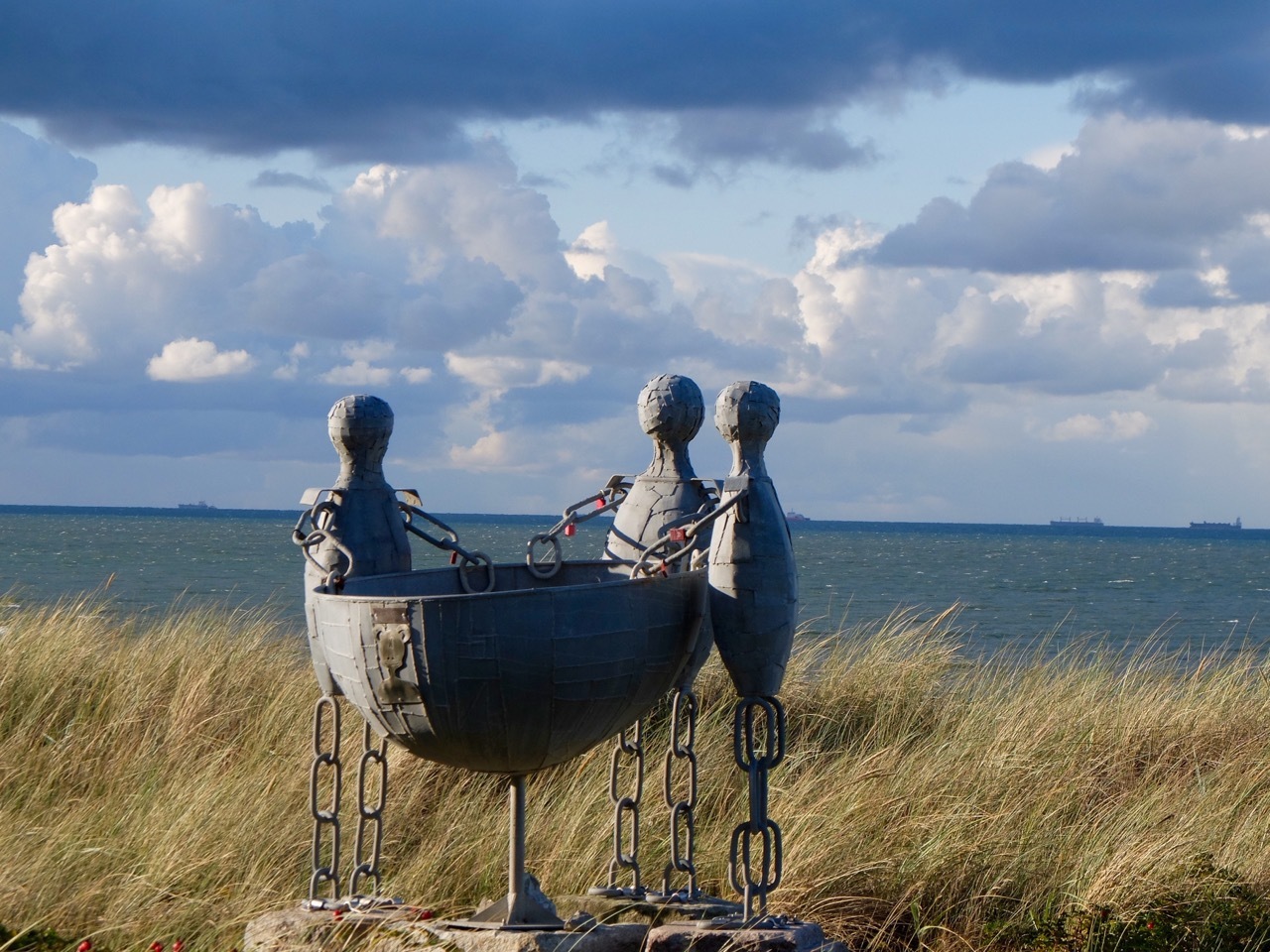 Tatsächlich ist es trocken, als es auf die Hunderunde am Wangerooger Hundestrand geht. Vor der Runde jedoch - darauf besteht Rieka - führt der Weg direkt zum Fischhändler ihres Vertrauens, um ein leckeres Krabbenbrötchen zu essen - natürlich mit Kräutermayonnaise. In diesem Moment gibt es nichts Besseres. OK, für die Hunde schon, denn die schauen bei diesem Programmpunkt in die Röhre. Die Hunde warten geduldig auf die ausstehende große Sause am Strand von Wangerooge. "Wir gehen jetzt um den Pudding", sagt die Insulanerin, "so nennt man hier einen Inselspaziergang." Vorbei führt die Runde am Café Pudding, einem ehemaligen Bunker, rechts entlang an der Promenade in Richtung Osten. Gut 1,5 km weiter stehen die letzten zum Hundestrand gehörenden Strandkörben - bis dahin bleiben die Hunde an der Leine. Wenn die letzten Strandkörbe passiert sind, dürfen die haarigen Freunde endlich frei laufen. Endlich!