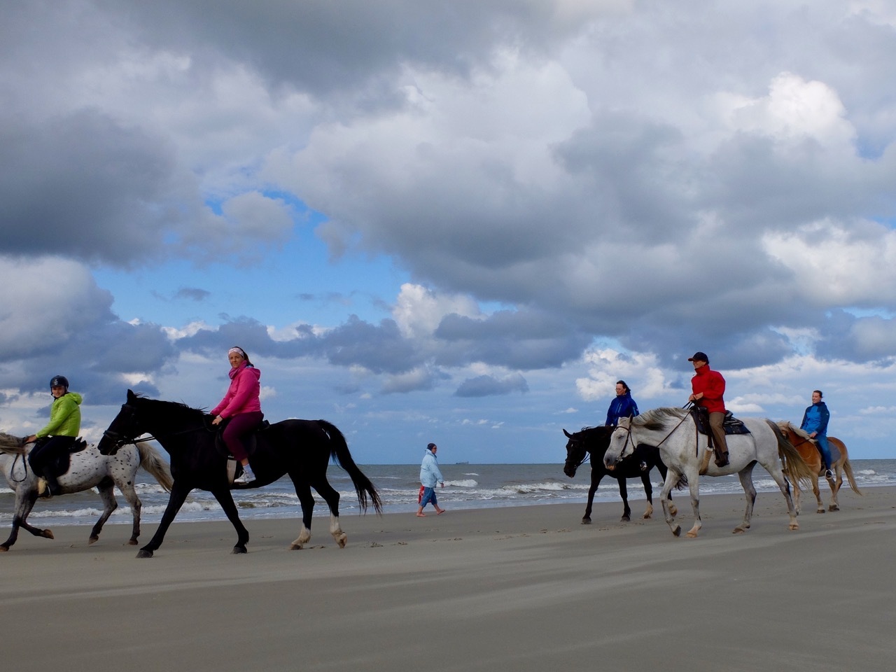 Der Hundestrand, der am östlichen Ende des Bade- und Burgenstrandes liegt, ist wie ein riesiger Abenteuerspielplatz. Die Hunde rasen mit einer irren Geschwindigkeit durch den hellen Sand, raufen und vollführen atemberaubende Ringkämpfe. Für die Tiere ist es ein großer Spaß, der sofort auf die Hundebegleiter übergeht. Stressgefahr besteht kaum. Obwohl "Anton" Riekas erster Hund ist, kann sie ihren fast einjährigen Labrador sehr gut einschätzen. Sie weiß, dass ihr Hund Wasser liebt und keine Gelegenheit auslässt, sich als Seehund zu gebärden. Freundlich begrüßt der stürmische Junghund alle Artgenossen am Strand. Im Schlepptau hat er den Gästehund aus Köln, der sich mit Anton stark und nach kurzer Zeit schon zu Hause fühlt. Als eine Gruppe Reiter entgegen kommt, werden die Hunde zur Sicherheit an die Leine genommen. Der Ausgang eines möglichen "Räuber & Gendarm-Spiels" ist ungewiss und würde sicherlich keinem der Beteiligten Freude bereiten.