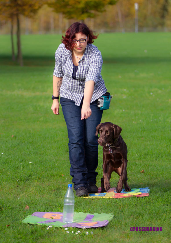 Die Frage, was den Kunden beim Crossdogging erwartet, ist nicht so leicht zu beantworten. Unser Ziel ist eine abwechslungsreiche Auslastung des Hundes, dabei jedoch den Aspekt der Erziehung nicht aus den Augen zu verlieren. Und vor allen Dingen liegt es uns fern, den Hund in Schubladen zu stecken. Wir wollen dazu anregen, die Rassebrille einmal abzunehmen und einem Border Collie mehr als nur das Hürdenspringen und dem Labrador nicht immer nur das Apportieren zuzutrauen, bzw. anzubieten. Der Allrounder unter den Hunden wird gesucht, und das kann auch ein Mops sein! Warum nicht? Haben Sie schon mal versucht, ihren Hund sitzen zu lassen, während sie mit Chinastäbchen ein Heißwürstchen transportieren? Gelingt es Ihnen, Ihren Hund nicht nur über ein Hindernis sondern auch drunterher zu lotsen? Können Sie sich darauf konzentrieren, Ihren Hund durch Ihre Beine laufen zu lassen, während Sie ein Kinderlied trällern?