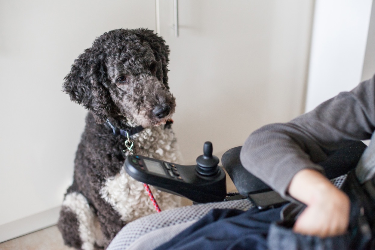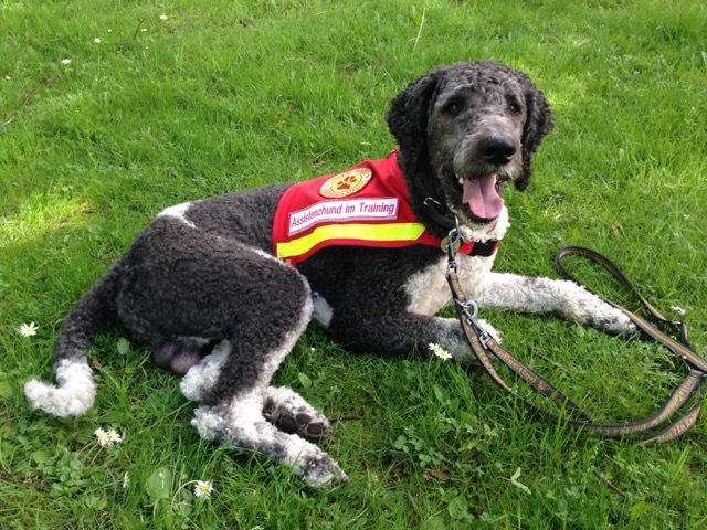 Findus hat „seinen Menschen“ kennengelernt, nachdem er den Eignungstest beim Verein Dogs with Jobs e.V.bestanden hat. Der Verein, bei dem ich selbst Gründungsmitglied und 2. Vorsitzende bin, bietet eine freiwillige Qualitätsprüfung u. a. für Assistenzhund-Mensch-Teams an, denn in Deutschland gibt es keine gesetzlich vorgeschriebene Prüfung für Assistenzhunde. Da sich im Nachbarland Österreich endlich eine gesetzliche Regelung für Assistenzhunde etabliert hat, arbeiten verschiedene Organisationen, u.a. der Arbeitskreis Assistenzhunde in Deutschland (AKAD) auf Hochtouren, um auch hier zulande etwas politisch zu bewegen. Bis sich etwas Offizielles etabliert hat, lasse ich die von mir ausgebildeten Teams weiterhin freiwillig prüfen.