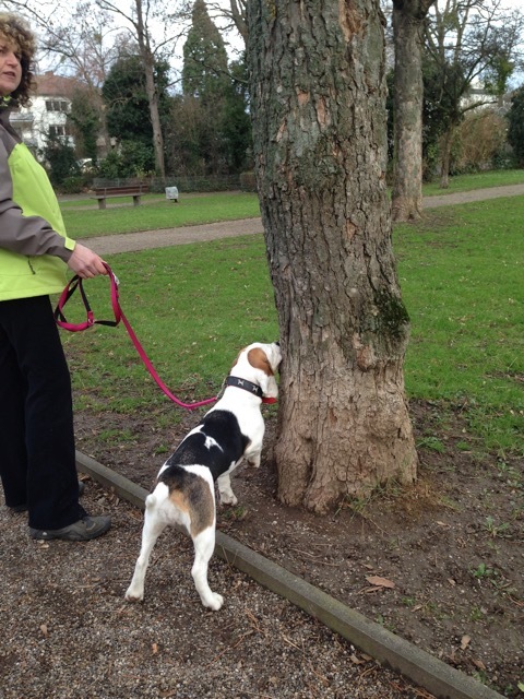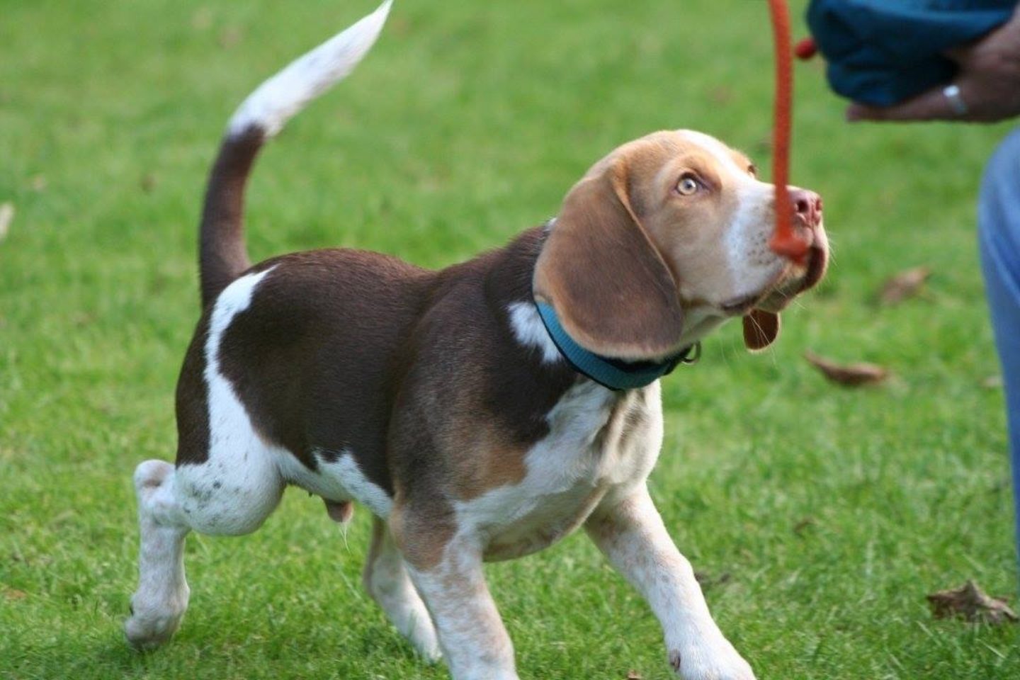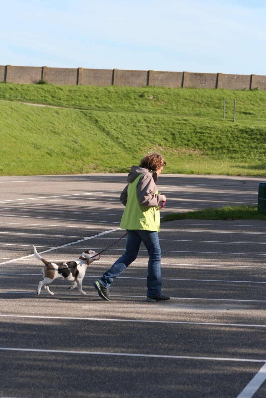 Meine wichtigste Frage lautet stets: „Was wünschen Sie sich denn, bzw. welches ist ihr größtes Problem?“ Die Kundin Petra antwortete: „Ich wünsche mir, dass meine Amy zuverlässig kommt, wenn ich sie rufe und dass sie sich beim Spaziergang an mir orientiert und nicht jagen geht“. Bei einem Beagle ist das keine leichte Aufgabe, da gerade diese Rasse gezüchtet wurde, um selbstständig Hasenspuren zu verfolgen. Hinzu kommt im Moment noch, dass Amy gerade in einem Alter war, wo Hunde nicht so aufnahmefähig sind, weil ihr Körper einfach mit Zahnwechsel und Pubertät so beschäftigt ist, wie das bei Amy mit sechs Monaten der Fall war. In der Zeit ist weniger Training, dann oft mehr.