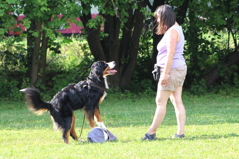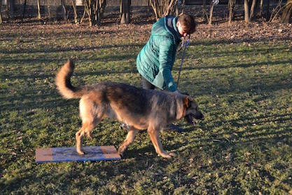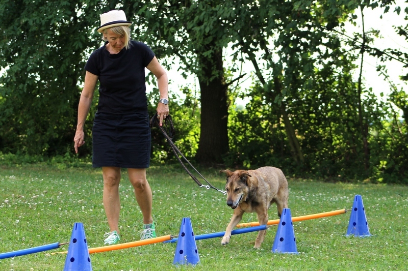 Es ist immer wieder auch für mich ein ganz besonderer Moment, wenn ein Hund das erste Mal eine Übung meistert, die ihn erkennbare Überwindung gekostet hat und sich dabei auf seinen Menschen konzentriert. Dabei kann es sehr unterschiedlich sein, was für den Hund schwierig ist. Traut sich ein Hund nicht auf das Balancekissen, reichen zunächst Berührungen mit der Pfote. Bei dem Mobilitätstraining geht es nie um Schnelligkeit, sondern immer um die saubere und ruhige Ausführung. Da kann es schon einmal ein bisschen länger dauern. Man erkennt Stolz und Freude in den Gesichtern von Mensch und Hund, wenn es klappt. Die gleichzeitige Anwesenheit der anderen Hunde im Parcours ist eine entscheidende, weitere Herausforderung. Die anderen Hunde werden wahrgenommen und dennoch bleibt die Konzentration bei der Übung. Sich den Situationen zu stellen und dennoch seine Aufgabe zu Ende zu bringen, kann dazu führen, dass andere Hunde nicht mehr als Bedrohung empfunden werden. So ganz nebenbei entwickelt sich ein ruhiger und gelassener Umgang mit Herausforderungen aller Art.