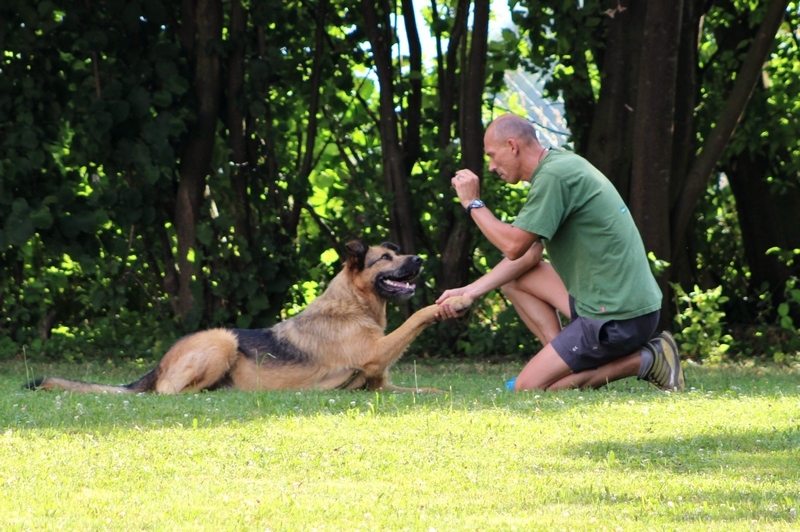 Bislang hatte ihn niemand gebremst und er hatte alles selbst entschieden. Mit der Einführung von Regeln übernimmt der Mensch Verantwortung und entlastet seinen Hund. Gerade für den unsicheren Hund ein entscheidender Schritt. Mit den ersten Übungen haben wir daher zunächst einmal eine ruhige Liegestelle für ihn eingerichtet. Vorher lag er gern im Flur, an den Türen und war daher in ständiger Bereitschaft auf alles und jeden zu reagieren. Gleichzeitig wurde die Leinenorientierung in Angriff genommen. Zu Beginn war Gustav nicht zu bremsen, mit voller Kraft voraus suchte er die Flucht nach vorne auf seine “Gegner“. Bereits nach kurzer Zeit und konsequentem Training konnten wir Fortschritte verzeichnen. Gustav orientierte sich mehr und mehr an seinen Menschen. Besucher kamen und gingen, Gustav blieb auf seinem Platz und wurde zunehmend entspannter. Die Leine beim Spaziergang war nicht mehr auf Spannung, Gustav lief immer lockerer.
