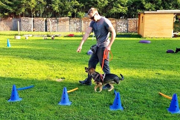Die ersten beiden Stunden im Mobilitätstraining waren schwierig, Gustav bellte schon beim Aussteigen das ganze Trainingsgelände zusammen und war kaum zu halten. Also mussten wir zunächst mit etwas mehr Abstand arbeiten, um ihn langsam vorzubereiten. Das klappte, und Gustav ließ sich mehr und mehr auf den Parcours ein. Es kam schnell die erste Stunde, in der Gustav völlig entspannt “seine“ Hindernisse absolvierte, ohne sich um die anderen Hunde zu kümmern. Wie sieht der Alltag heute aus? Christine ist aktive Reiterin und wird von Uwe und natürlich auch von Gustav regelmäßig auf den Turnieren begleitet. Probleme: Fehlanzeige - die meiste Zeit verschläft Gustav. Er hat seine Chance genutzt und sich zu einem Vorzeigehund entwickelt. Ohne den unermüdlichen Einsatz und die unendliche Geduld von Christine und Uwe wäre das nicht möglich gewesen. Vor einiger Zeit ist Goldie, ein Kangal-Mix aus dem Tierschutz, eingezogen. Die Aufnahme eines zweiten Hundes, der nun ebenfalls seine Chance bekommt, wäre ohne das Training mit Gustav nicht möglich gewesen.