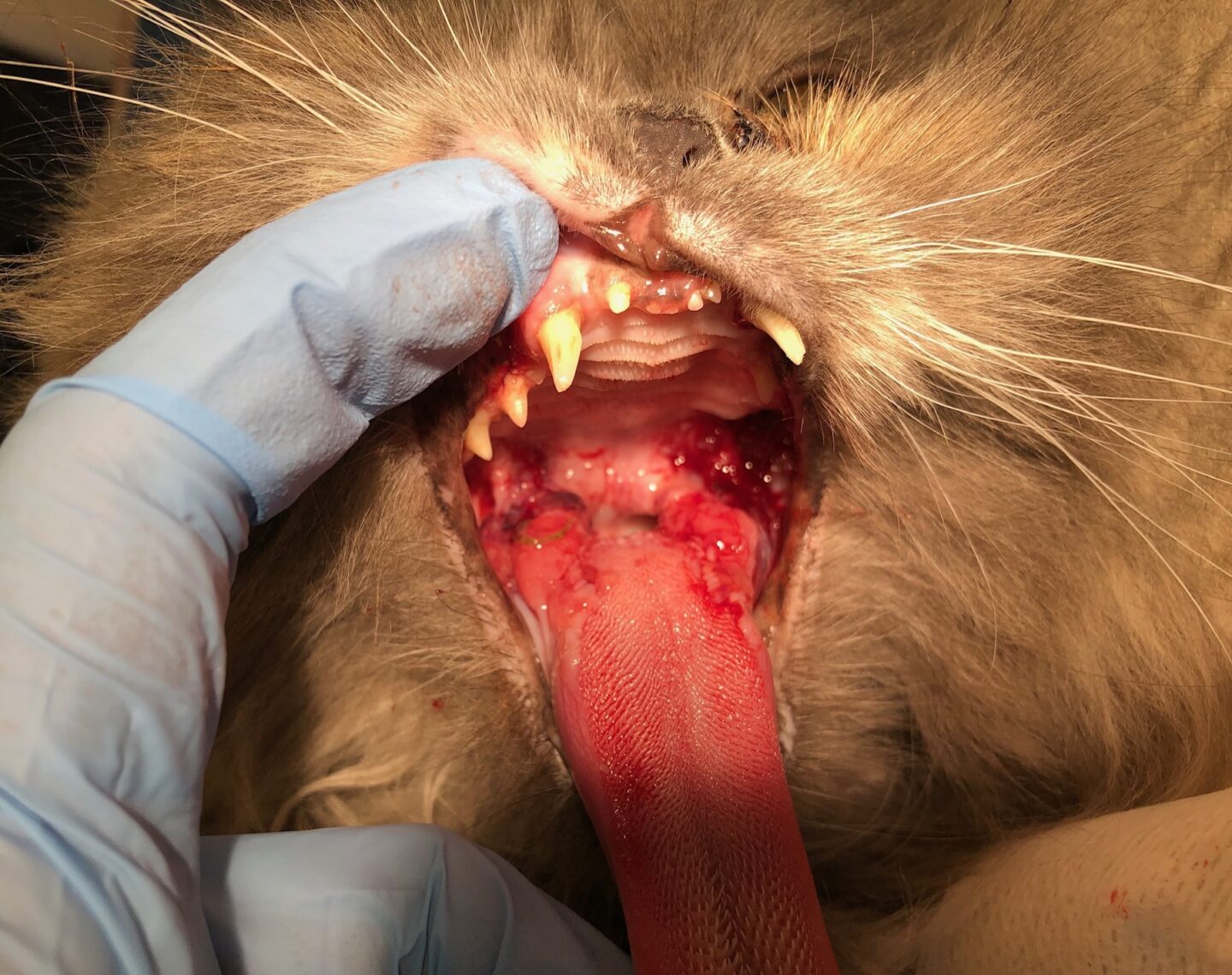 Bei der chronischen felinen Gingivostomatitis handelt es sich um eine schwerwiegende, hochgradig schmerzhafte, immunvermittelte Erkrankung der Maulhöhle der Katze, deren Therapie viel Geduld seitens des Tierbesitzers als auch des Tierarztes erfordert. Kennzeichnend ist neben einer Gingivitis immer auch eine ulzerative und/oder proliferative Entzündung der oralen Mukosa, oftmals im Bereich des Arcus palatoglossus und des Pharynx, aber auch der Zunge. Meist tritt die Erkrankung erstmals bei Katzen mittleren Alters in Erscheinung, kann sich aber auch bereits bei jüngeren Tieren aus einer juvenile