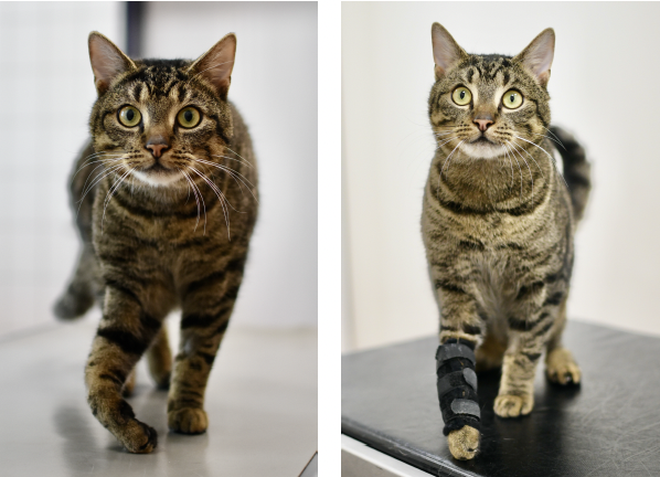 Bei komplexen Traumata, wie sie bei Katzen mit ungesichertem Freigang verhältnismäßig häufig vorkommen, ist ein multimodaler Ansatz Voraussetzung für eine optimale Genesung. Zum Vorgehen gehört neben der chirurgischen Versorgung auch die Versorgung mit Schmerzmitteln und Supplementen, ebenso wie die physiotherapeutische Rehabilitation. Diese kann bereits wenige Stunden oder Tage nach dem chirurgischen Eingriff beginnen. Übungen und Anwendungen können im klinischen Setting, ebenso wie zu Hause durchgeführt werden. Unser Patient „Fussel“ hat noch viel Arbeit vor sich. Das kurzfristige Ziel, Komplikationen durch Muskelkontrakturen an der operierten hinteren Gliedmaße zu verhindern, ist erreicht. Das langfristige Ziel, die Vordergliedmaße zu erhalten und eine möglichst umfangreiche Funktion wiederherzustellen, erfordert noch Aufwand und Geduld, ist aber zum aktuellen Zeitpunkt durchaus möglich.