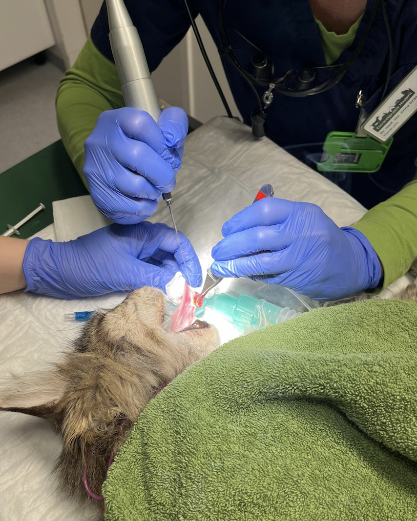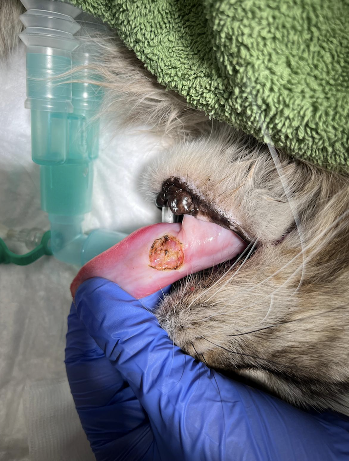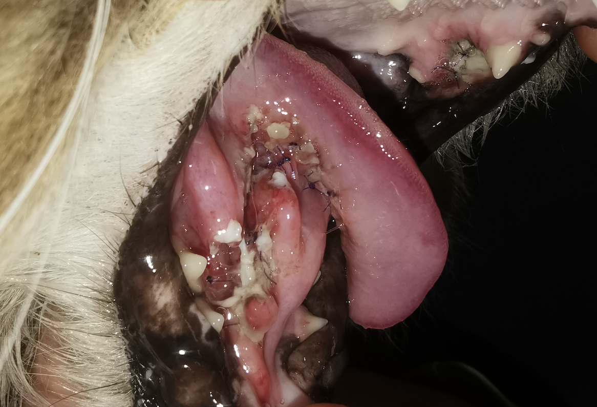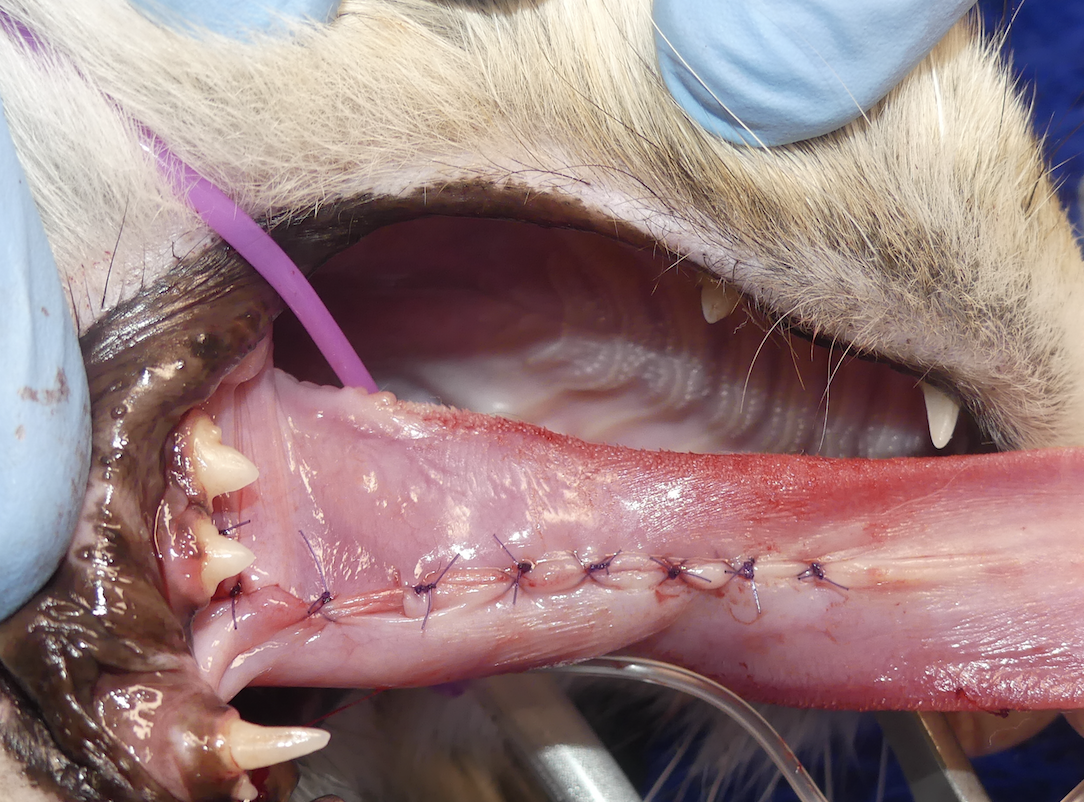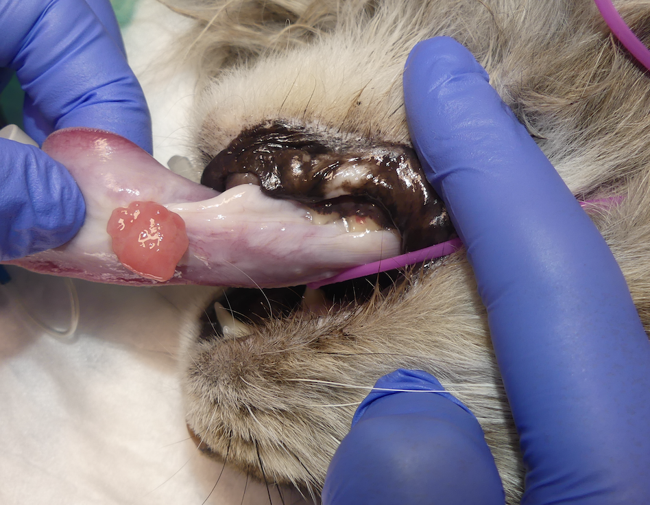Katze eine Wundheilungsstörung am Zungengrund. Da es im Bereich der