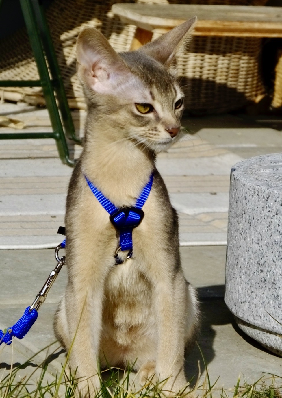 • Brustgeschirr und Leine tragen