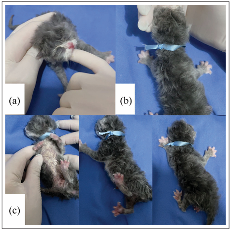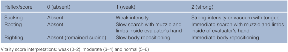 - Hibaru VY, Pereira KHNP, Fuchs KDM, Lopes MD, Alfonso A, de Souza FF, Chiacchio SB, Tsunemi MH, Machado LHA, Lourenço MLG. Topics in the routine assessment of newborn kitten vitality: Apgar score, reflexes and complementary assessments. J Feline Med Surg. 2022 Jun;24(6):e34-e42. doi: 10.1177/1098612X221081404. Epub 2022 Mar 30. PMID: 35352984.