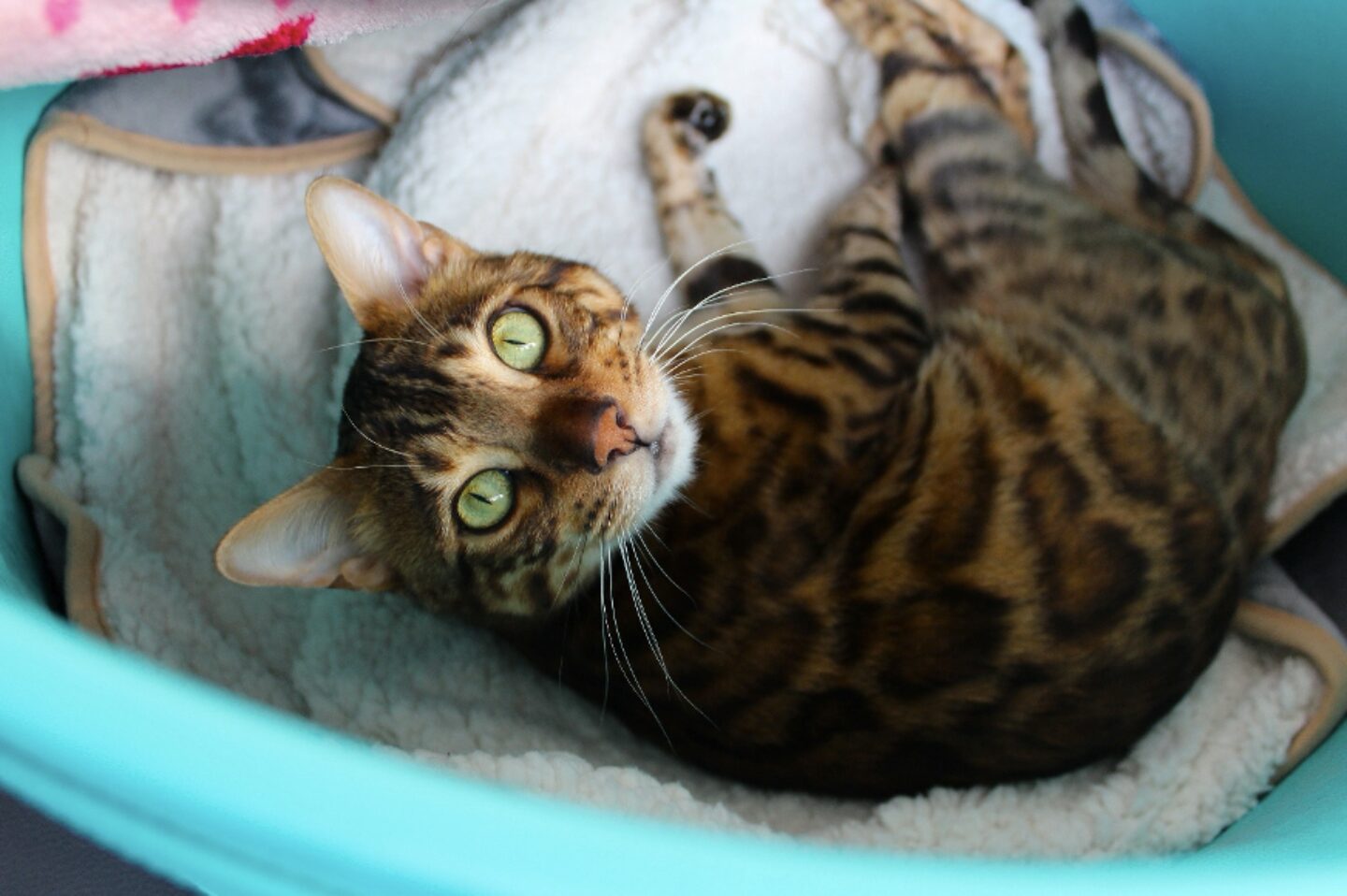 Kosmo, ein junger Bengalkater und Freigänger, wurde nach einem Trauma im Garten eines Nachbarn aufgefunden. In der Tierklinik zeigte er sich aufmerksam, jedoch nicht stehfähig; der Schwanz hing schlaff.