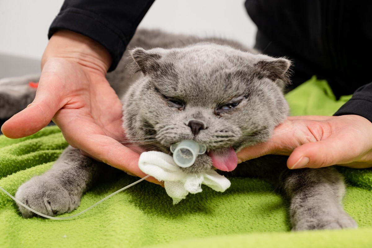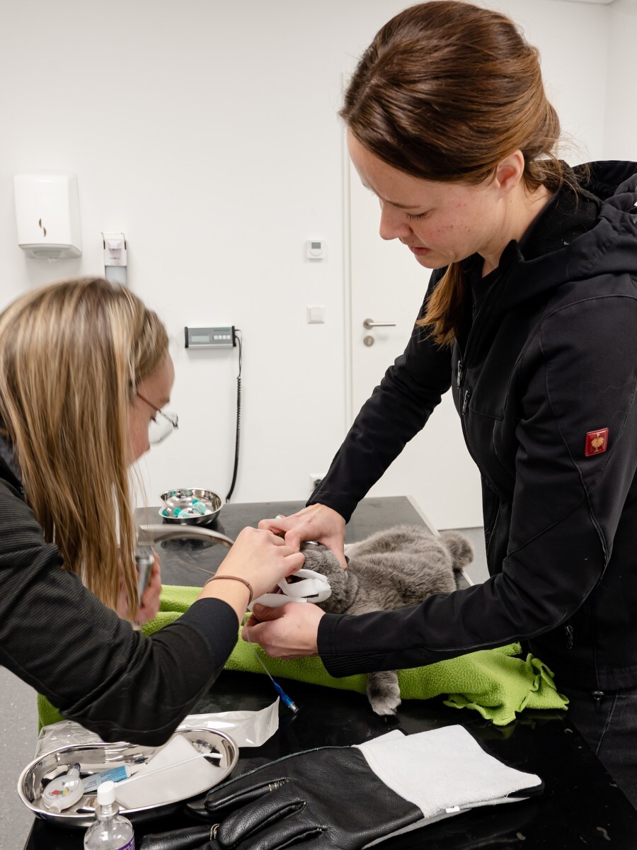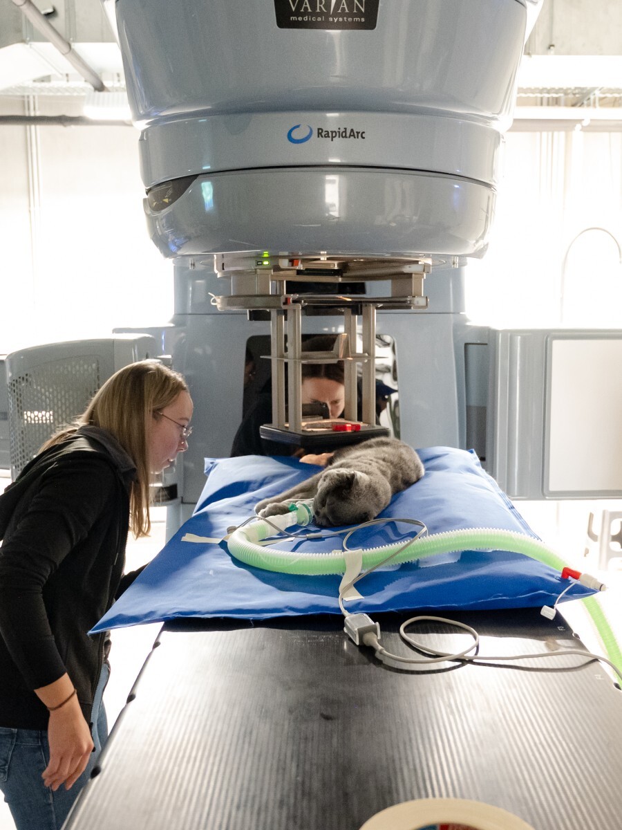 Die Katze wurde insgesamt drei Mal innerhalb einer Woche (Mo-Mi-Fr) in Allgemeinanästhesie (Einleitung: Propofol, Erhaltung: Sevofluran) an beiden Hintergliedmaßen bestrahlt. Die Fraktionsdosis von 5 Gy wurde über einen Zeitraum von 52 Sekunden eingestrahlt, die gesamte Behandlung von der allgemeinen Untersuchung bis zum Herausgeben des wachen Patienten dauerte jeweils ca. 45 Minuten.