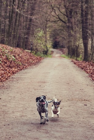 Das leicht hügelige Gelände führt über Waldwege, Asphalt und Pflaster. Besonders freuen sich die Hunde über die Bachläufe.
