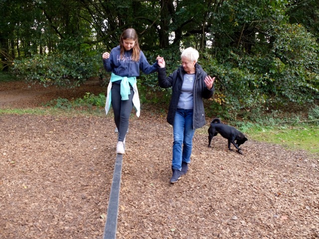 Die Strecke um den Decksteiner Weiher ist besonders sonnatgs sehr beliebt - unter der Woche sind hier viele Sportler, unter anderem auch die Fußballspieler des EFFZEH, hier unterwegs. Es lässt sich hier ganz entspannt spazieren, entspannen und im Herbst Kastanien sammeln. Jule und ihre Oma Doris genießen diese Runde mit einem Trimm-Dich-Stop und der Einkeht im nahe gelegenenGeißbockheim.