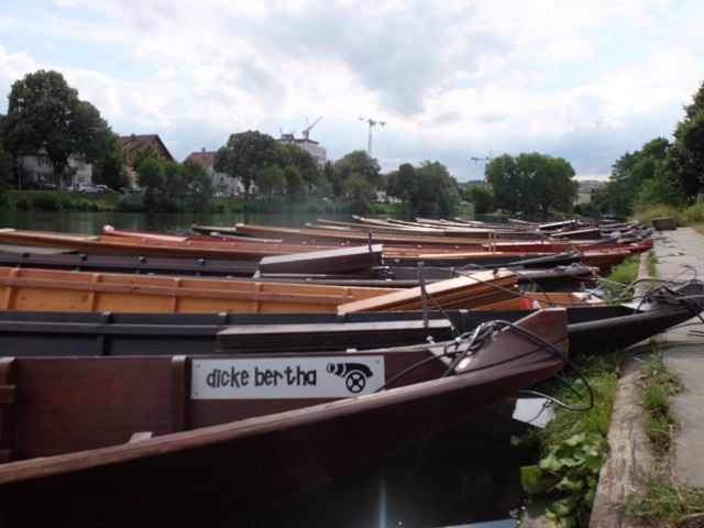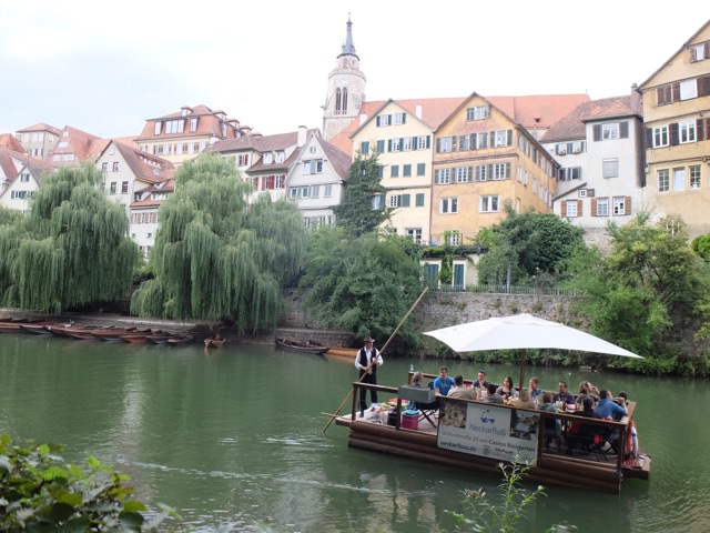 Tübingen ist ein wahrlich beschauliches Städtchen. Und wer in der Altstadt ist, will am liebsten gar nicht mehr weg. Wenn sich Hund und/oder Besitzer bewegen müssen, bietet sich der Neckar mit seinem Uferweg an. Mit ein wenig Glück sieht man auf dem Fluss Menschen auf Holzbooten mit merkwürdigen Stangen fahren. Das sind die sogenannten Stocherkähne, zwischen 7 und 11 Meter lang und eine der ältesten Bootsformen überhaupt. Der Tübinger hat, um das Boot zu bewegen, eine 5-10 Meter lange, ca. 8 Kilogramm schwere und mit einer Stahlspitze versehenen Fichtenstange in der Hand, mit der er im Wasser "stochert" und das Boot so fortbewegt. Mehr Infos dazu gibt es unter www.stocherkahn.de.