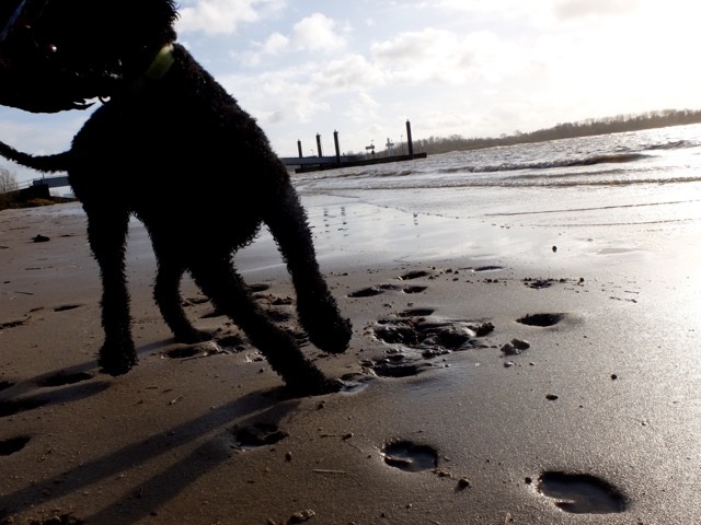 Ein stürmig, erholsamer Strandspaziergang an der Elbe.